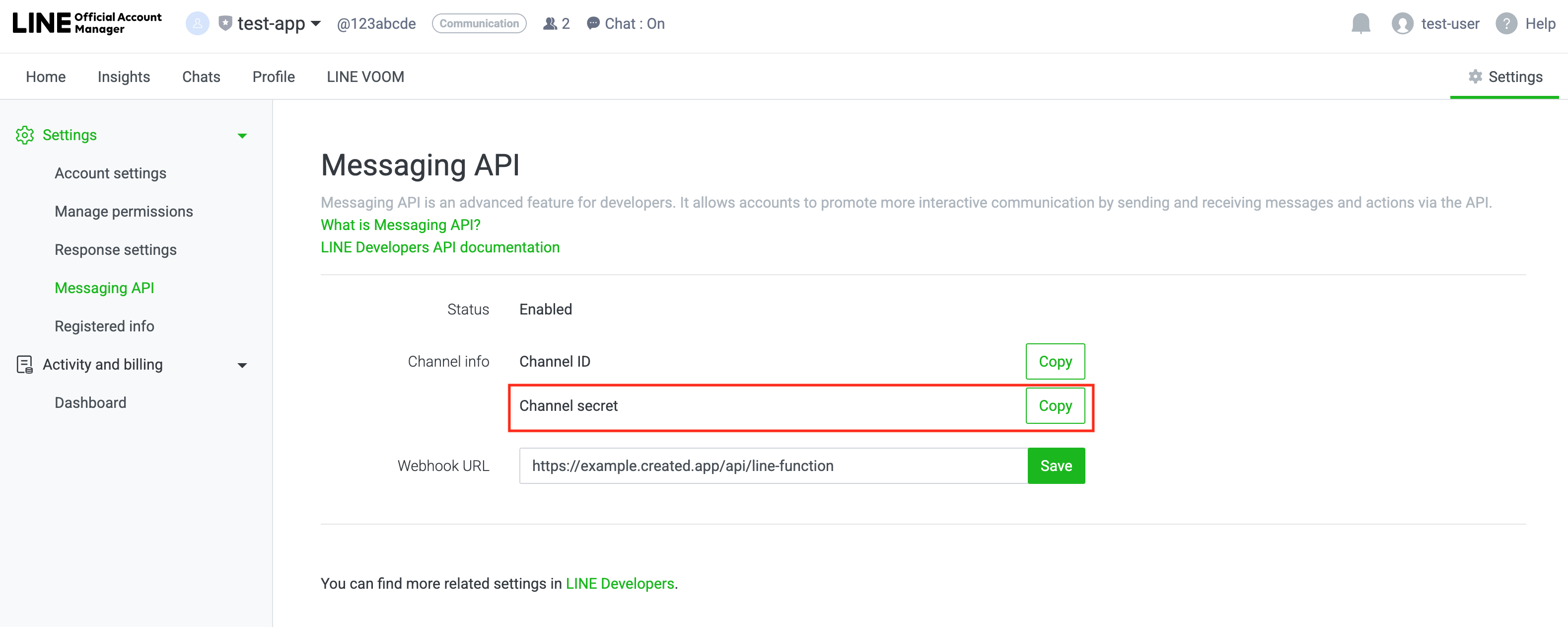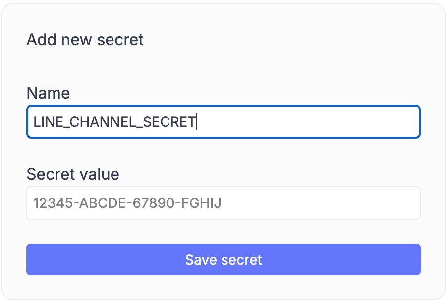 - Paste Channel Secret into “LINE_CHANNEL_SECRET”